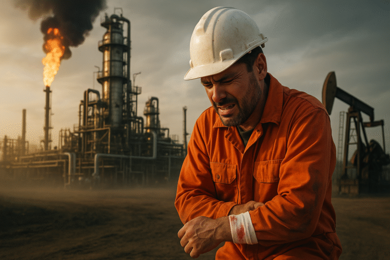 Injuries occurring on oil rigs, drilling platforms, and production facilities in federal waters, including falls, equipment failures, explosions, and fires covered under the Jones Act and general maritime law.